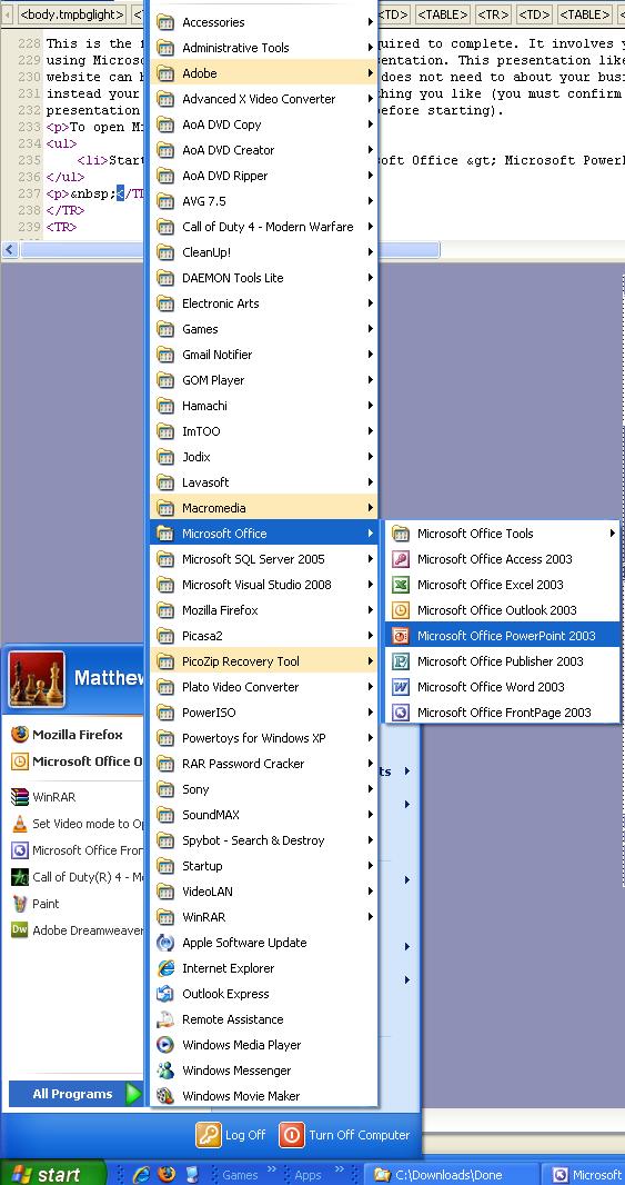 - Start > All Programs > Microsoft Office > Microsoft Office PowerPoint